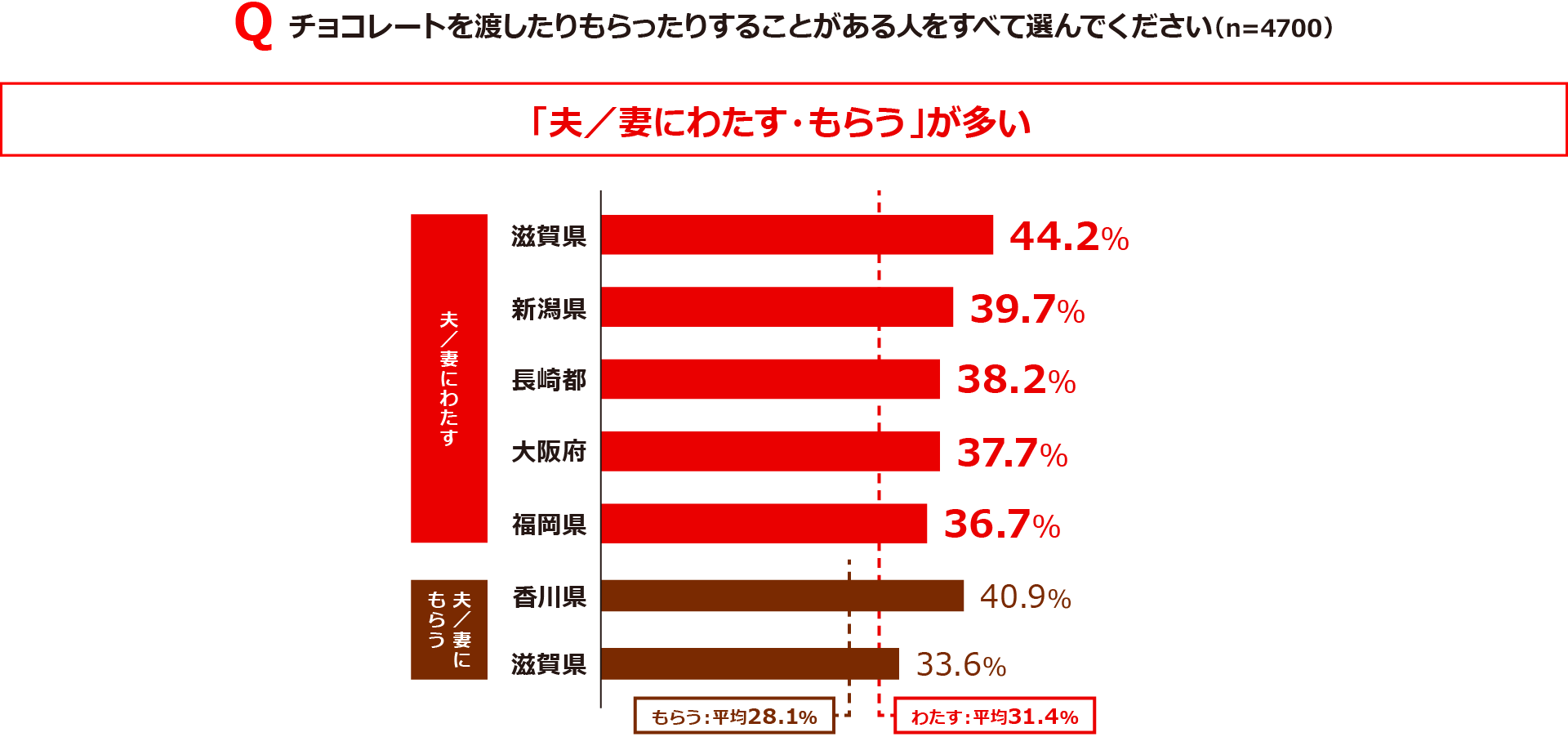 • 夫婦間でチョコを渡す・もらう … 6県が平均より5%以上高い
