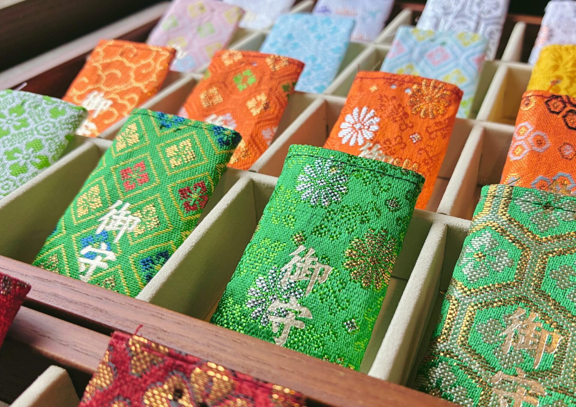 お守り袋、組み紐、願い紙のデザインを自由に組み合わせることができ、2,000種類以上のバリエーションが生まれます。他の人と重ならない、自分だけのお守りを作ることが可能です。