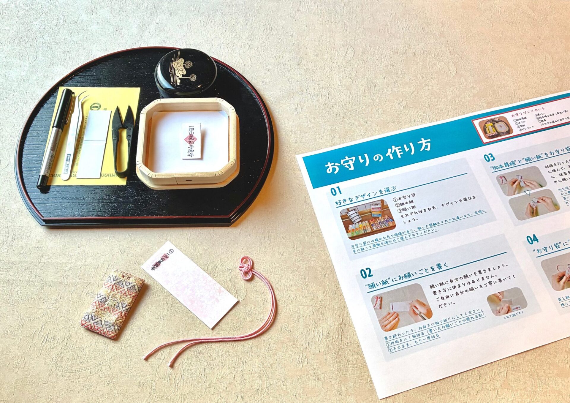 体験は誰でも参加可能で、予約不要。自分の願いと向き合いながらお守りを作るひとときを味わえます。