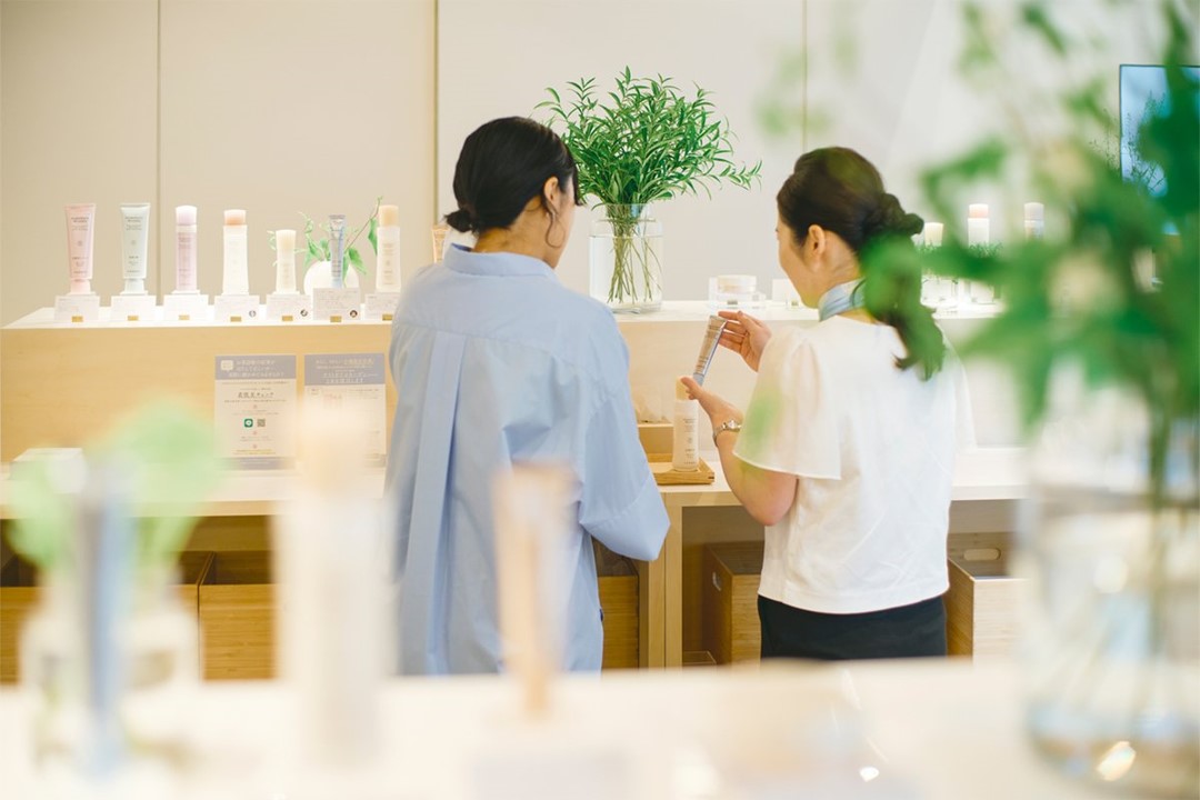 漢方の考え方やAI肌分析を通じて導き出されたおすすめ製品を体感しながら、自身の肌とじっくり向き合う時間を過ごせます。