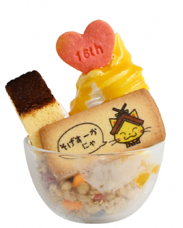 木次乳業のコク深いミルクソフトクリームに、甘酸っぱいマンゴー&パッションフルーツソースを合わせ、しまねっこクッキー、濃厚なバスクチーズケーキ、香ばしいグラノーラをトッピング。ひと口ごとに楽しさが広がる、フェア限定の特別サンデーです。