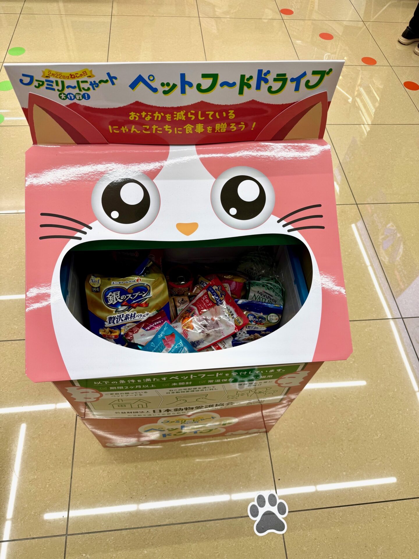 また、ねこにまつわる一部店舗ではペットフードドライブを実施。開始4日間で約385匹分(成猫1日70g換算)の食事量が集まりました。集まったフードは日本動物愛護協会へ寄贈されます。
