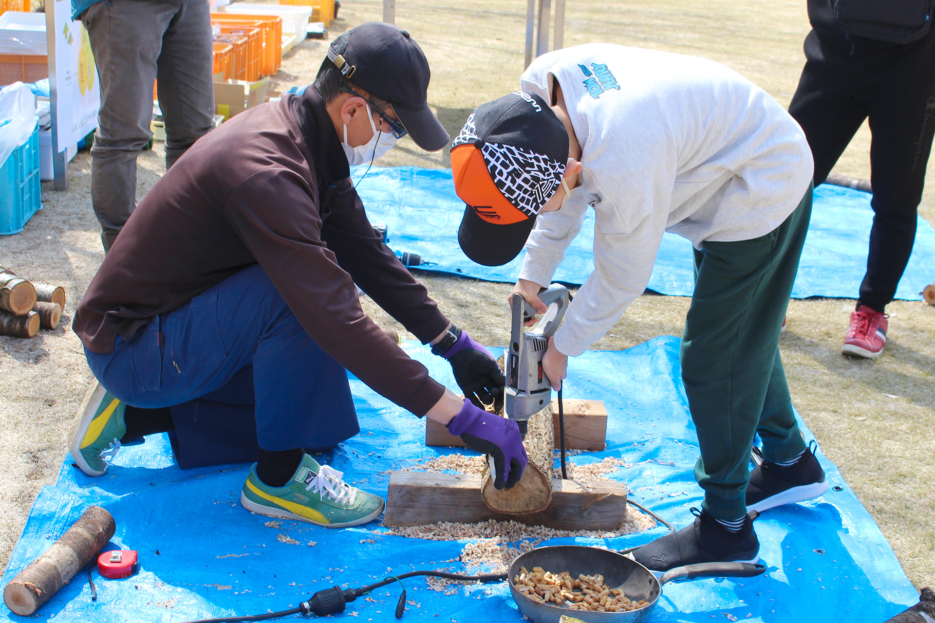 原木に種菌を打ち込み「ほだ木」を持ち帰り可能。