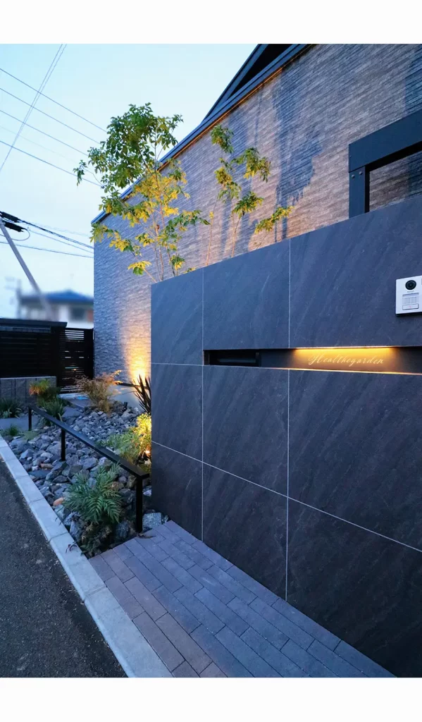 建物との調和、素材の選定、植栽計画、そして夜の演出までトータルで設計することで、シンプルでありながら印象に残る外構が完成しました。ヒールザガーデンでは、暮らし方や周辺環境を丁寧に読み解きながら、一邸一邸に最適なエクステリアをご提案しています。