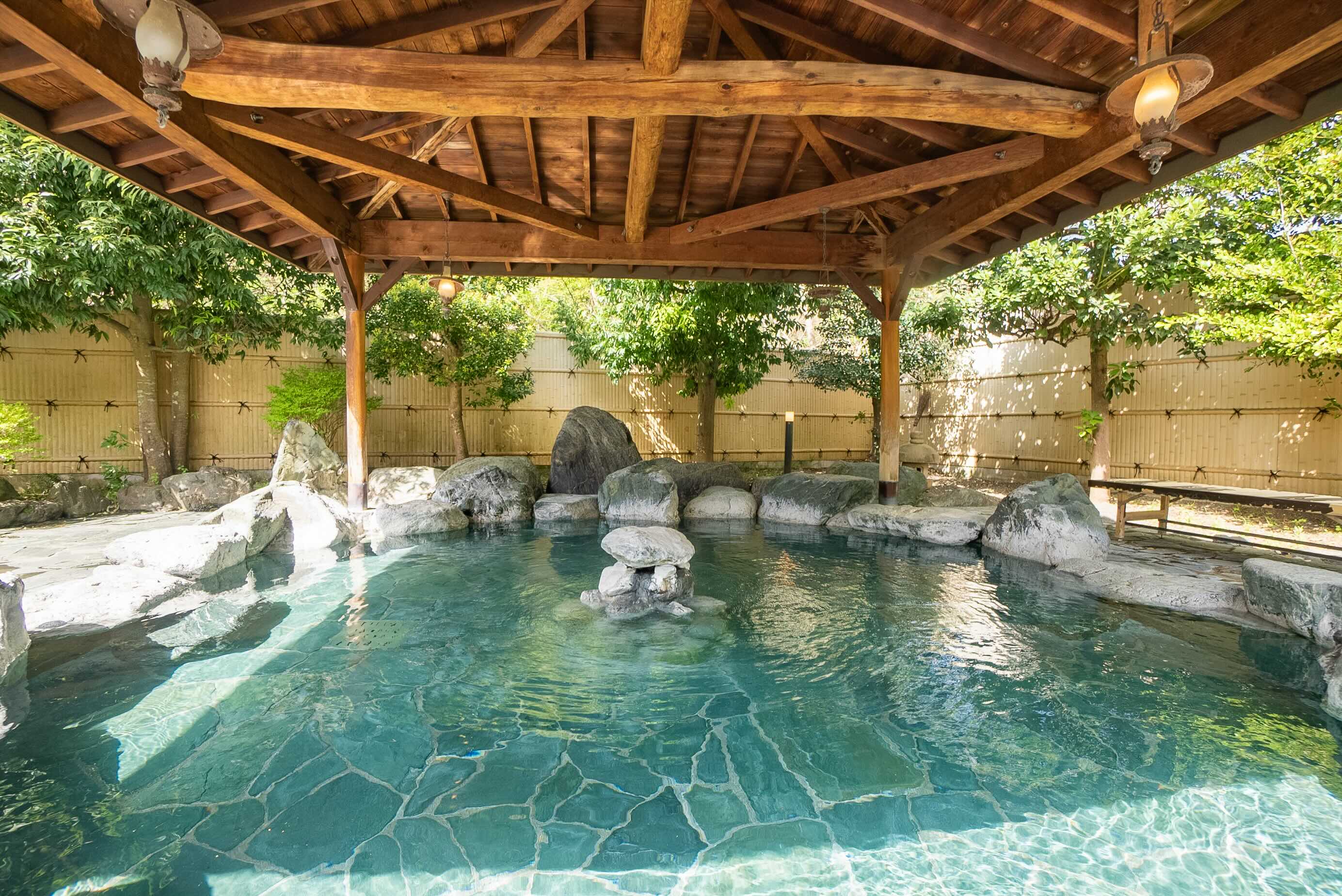 露天風呂や炭酸泉、ジェットバス、サウナなどを備え、自然に囲まれた環境でくつろぐことができます。