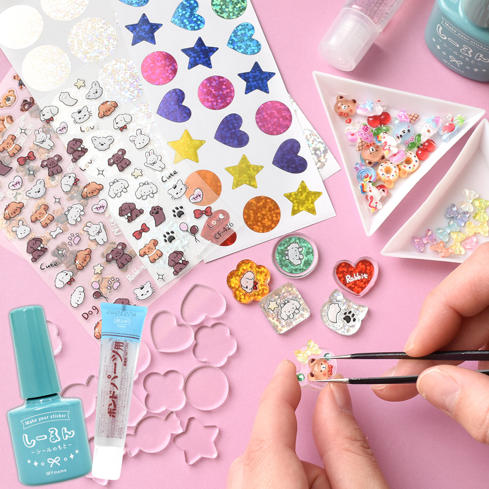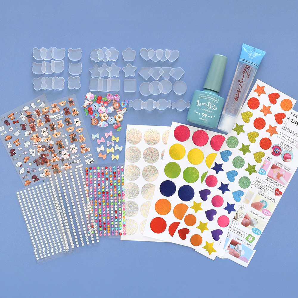 市販のシールやデコパーツ、ラインストーンなどを組み合わせることで、自分だけのオリジナルシールを制作可能です。