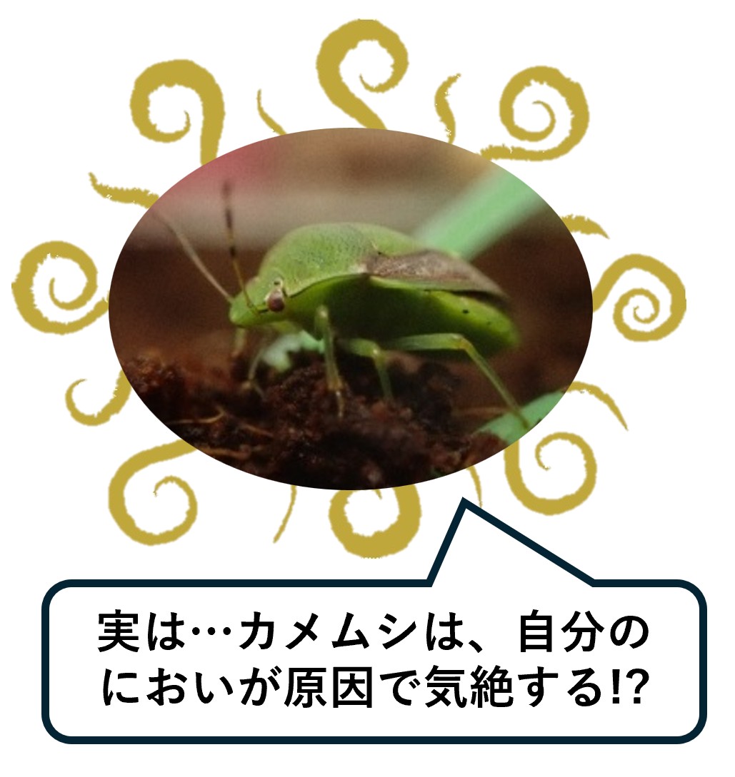 カメムシのにおいを再現した体験コーナーでは、調香師が再現したリアルな刺激臭を体感可能です。